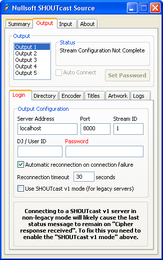 Use SHOUTcast v1 mode (for legacy servers):