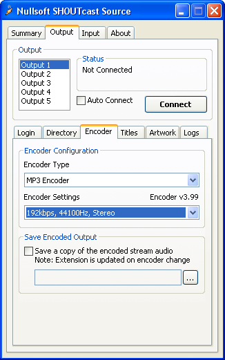 Encoder Settings (select streaming audio format) Select the "Encoder" tab at the top of your Output DSP window.